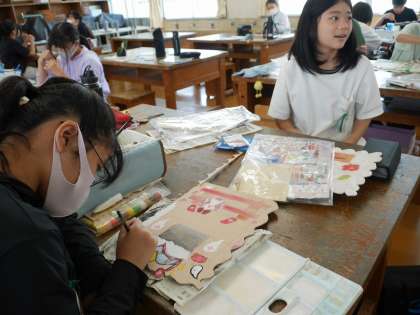 「スペシャル掲示板」板を思い思いの形に切って掲示板を作っています。