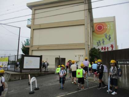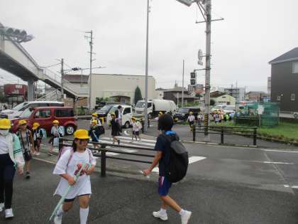 雨上がりのひんやりとした朝です。 子どもたちは元気に登校しました。