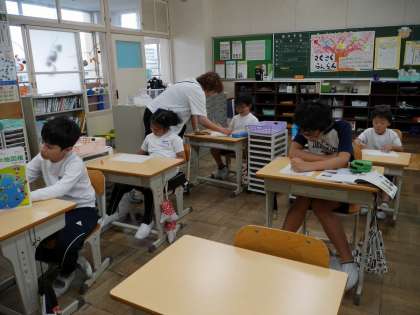運動会練習で交流授業に出かけることも多い時期ですが、教室での勉強も頑張っています。