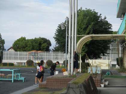 さわやかな秋晴れの朝です。 今日はアサヒンピック全校練習を行います。