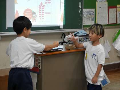 秋さがしで見つけたものを使った遊びを発表しました。