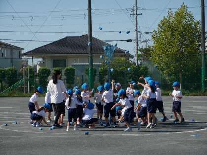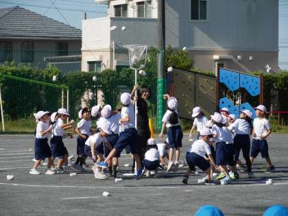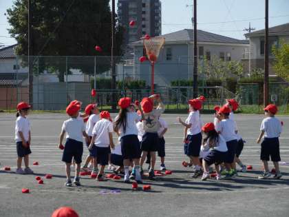 ダンスを披露した後、玉入れの位置に移動し競技をします。