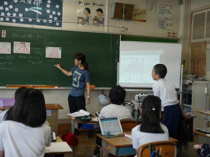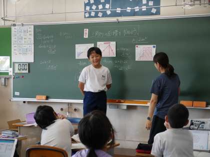少人数での学習です。 三角形の面積の求め方について話し合っていました。