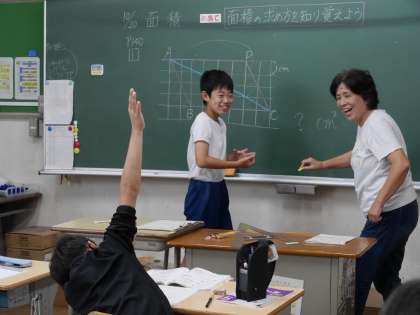 平行四辺形の面積の求め方について、自分の考えを出し合っていました。