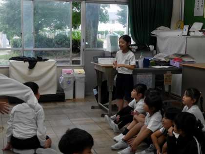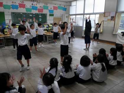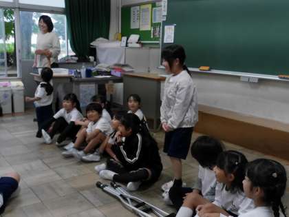 学年種目の入場時に踊るダンスの練習をしていました。 見ていた子はアドバイスをしていました。