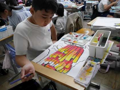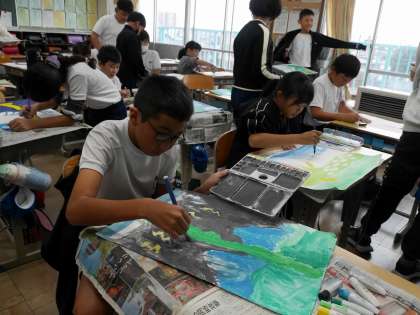 読書感想画の制作です。 中心に描く龍の描写にみんな苦労している様子でした。
