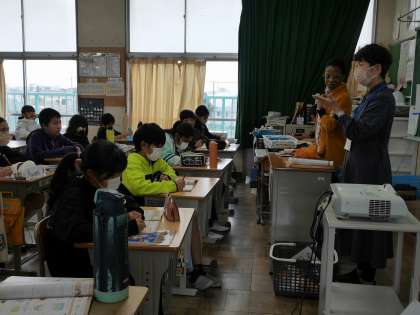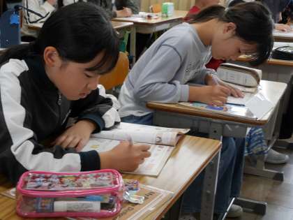 アンディ先生から、日本語の方言のように、英語も話す国によって少しずつ違いがあるというお話を聞きました。その後アルファベットを聞き取って書く練習をしました。