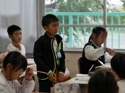 かけ算の学習をしていました。 式の意味を確認していました。