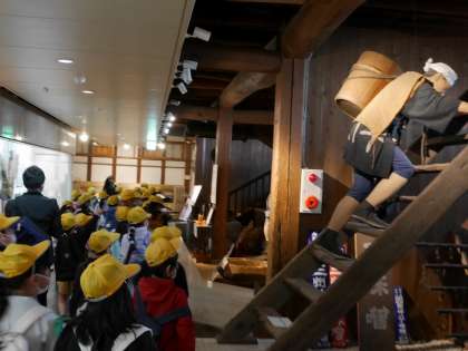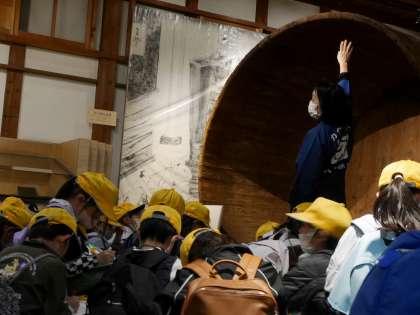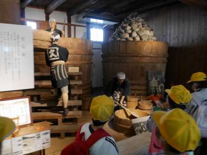 史料館では、カクキューの歴史や、味噌蔵のつくり、味噌のつくり方などを教わりました。