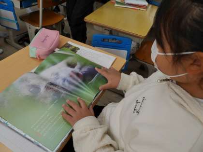 「ビーバーの大工事」を参考に、自分で説明文を書く学習です。
