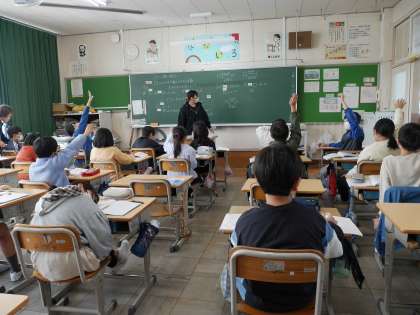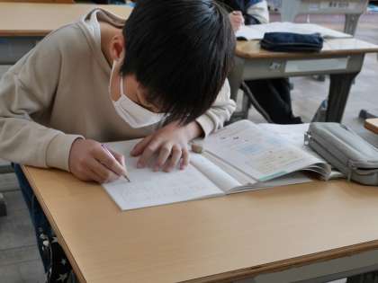 「式と計算のじゅんじょ」四角を使った計算で、四角の値を求めるためにどうすればよいのか意見を出し合って解いていました。
