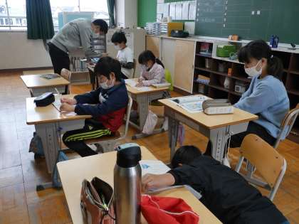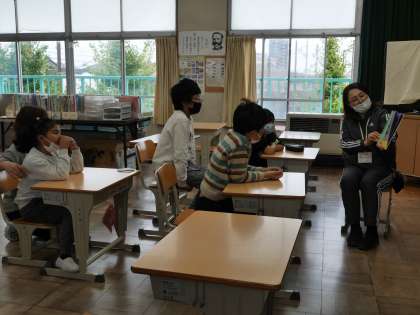 2組ではハロウィーンにちなんだ絵本を読んでもらっていました。