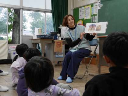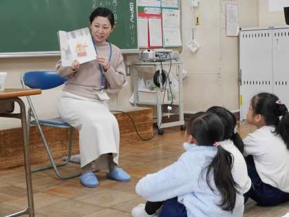 地域学校共働本部の読み語りボランティアさんたちが楽しい絵本の読み語りをしてくださいました。