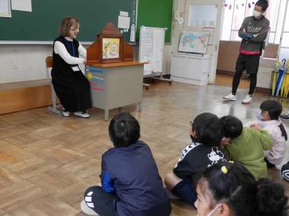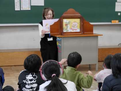 地域学校共働本部の読み語りボランティアさんたちが楽しい絵本の読み語りをしてくださいました。