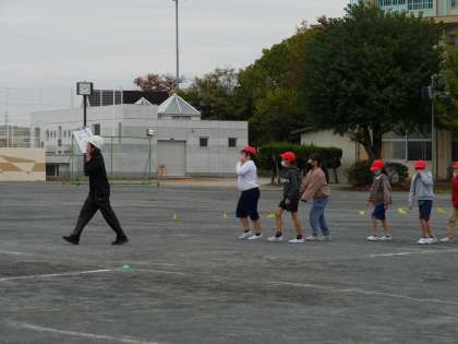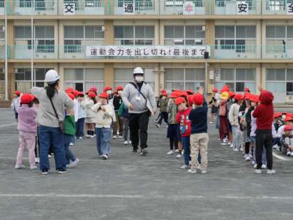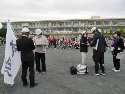 避難場所の運動場に出たら人員確認の点呼を行います。