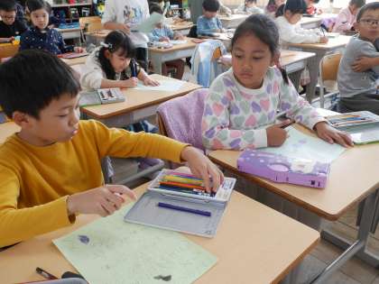 アサガオのたね屋さんのチラシを作っていました。 チラシを各学年に届けて宣伝するそうです。