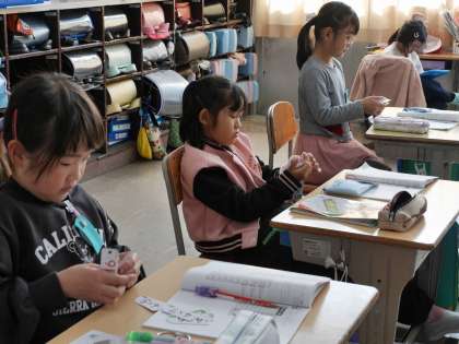 九九の学習です。 今日は四の段を暗唱していました。