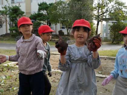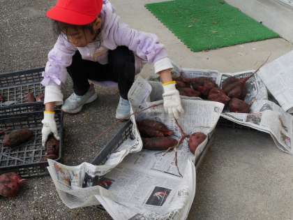 畑で育てていたサツマイモを収穫しました。