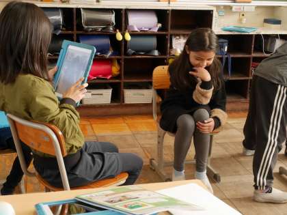 「体でかんしょう」 教室に入ったらあちこちに「考える人」が!