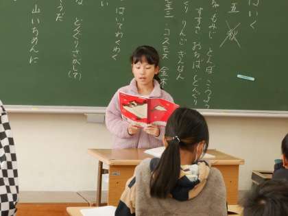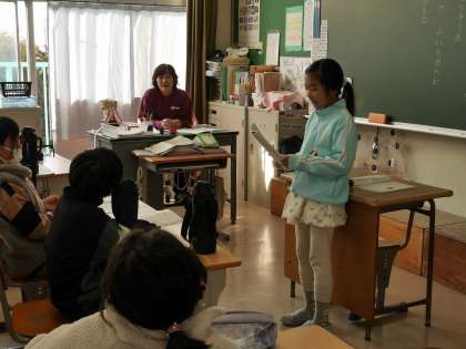 自分で作った季節の俳句をみんなの前で発表していました。