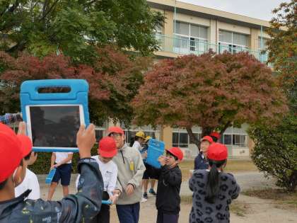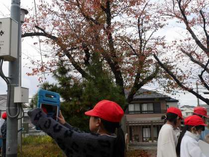 学習用タブレットで記録を撮って、後で春、夏の写真と比べます。