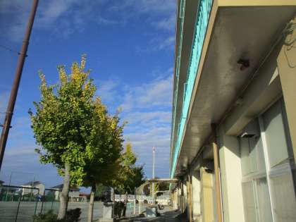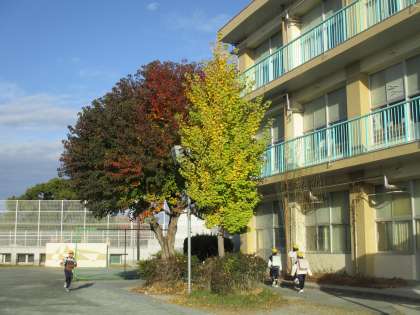 このところの冷え込みで校庭のイチョウも葉を黄色く染め始めました。