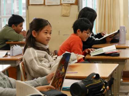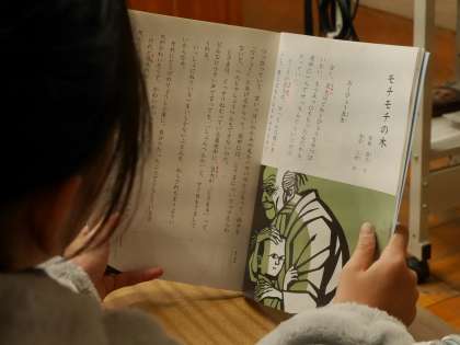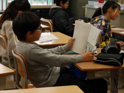 学級のみんなで一文ずつ交代しながら音読していました。