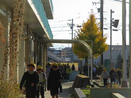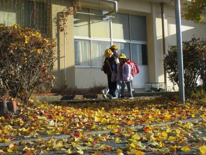 校庭の木々が葉を落とし始めました。