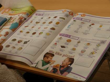 会話で使う食べ物の英単語の発音練習をしていました。