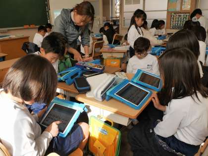 今日は学習用タブレットで、写真係の子が撮影した画像の受け渡しをしていました。