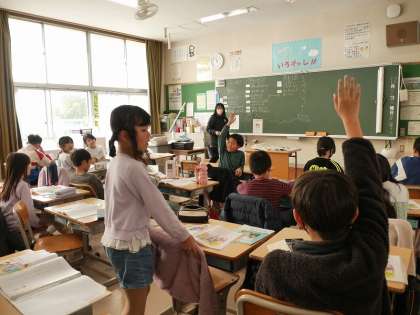 今日は担任の先生が入れ替わって道徳の授業を実施しました。
