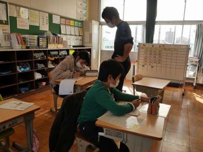 多くの児童が交流学級での学習に頑張っています。