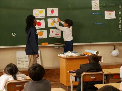 ALTの先生と果物の名前を英語で答えるゲームを楽しんでいました。