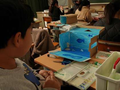 箱の中をのぞいて楽しむ作品作りを進めています。