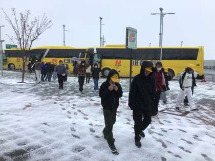 鈴鹿SAで休憩。 鈴鹿は雪景色です。
