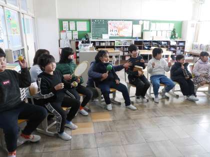 さくら交流会練習 公開日 2025/12/11 更新日 2025/12/11 各学年から 明日は崇化館中学校で、中学校と学区3小学校の交流会に出かけます。 交流会で発表する「あわてんぼうのサンタクロース」の演奏練習をしました。 特別支援学級