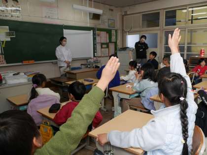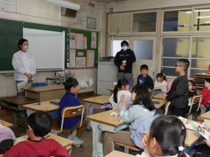 給食を作る様子の動画を見て、いろいろな質問が出されました。