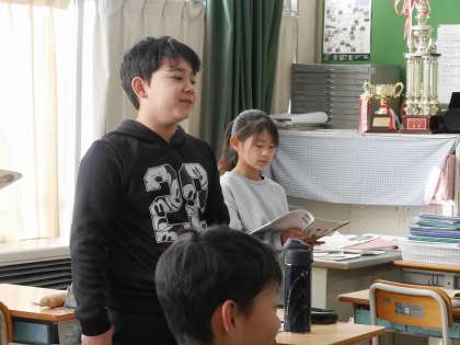 みんなが聞く中で歌うのは照れくさいと思いますが、がんばって歌っていました。