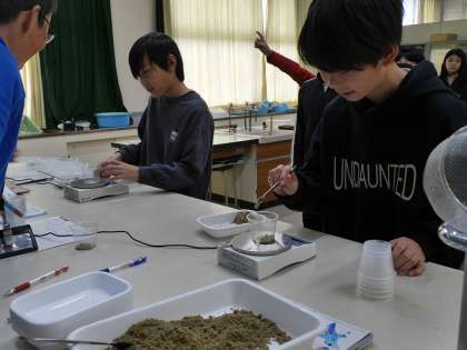 はかりで土を5g文正確に計れたら次の人に交代するというゲームをしていました。
