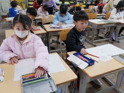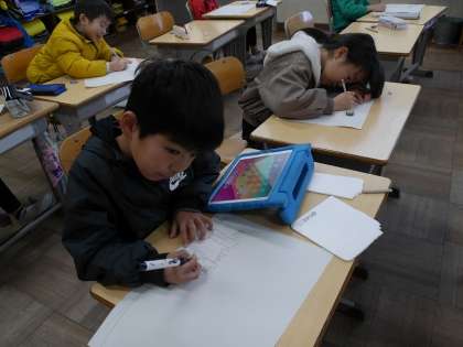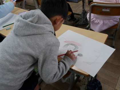 学校生活での出来事を思い出して絵に描いていました。