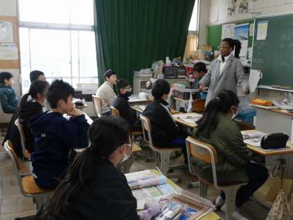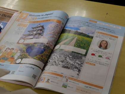 日本を紹介する会話のやり取りを、歌に合わせて話す活動をしました。