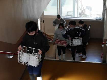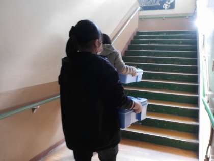 上級生が下級生の食缶を運ぶなど、助け合いながら準備・片付けをしました。