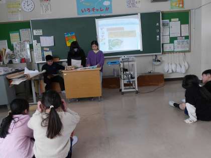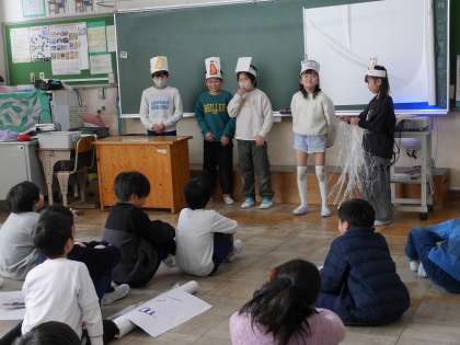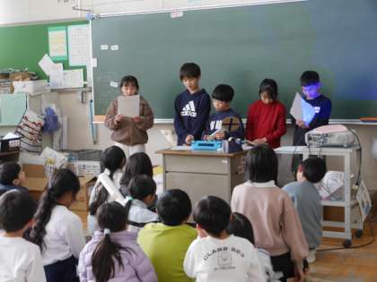 グループでほかの学級を訪問して発表を聞いてもらっていました。