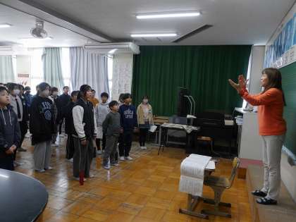 「音楽おたすけ隊」の講師の先生をお迎えして、卒業式の歌の指導を受けました。
