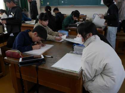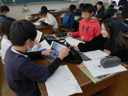 版画の下絵を描いていました。 多色刷りの版画なのだそうです。 出来上がりが楽しみです。