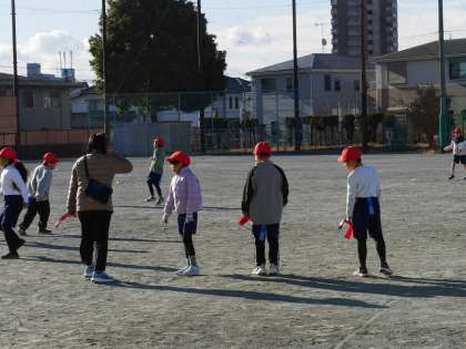 しっぽ取り形式のおにごっこをしていました。 走って体もぽかぽかです。