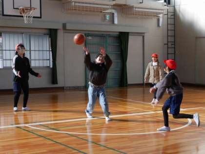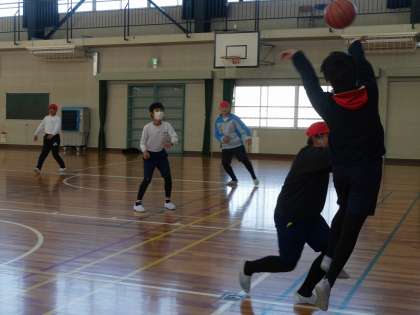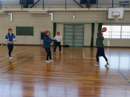 バスケットボールの学習です。 3対1のパスゲームをしていました。