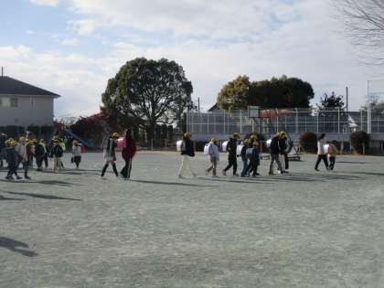 今日の下校からみんなで唱和する交通安全スローガンが新しくなりました。