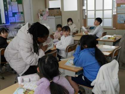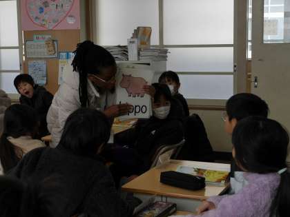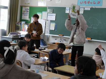 ALTの先生が示すカードに描かれている動物名を英語で答えていました。