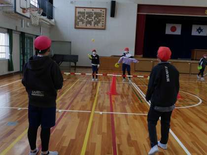 「テニピン」を試合形式で楽しみました。 どの子も打ち方が上達していました。